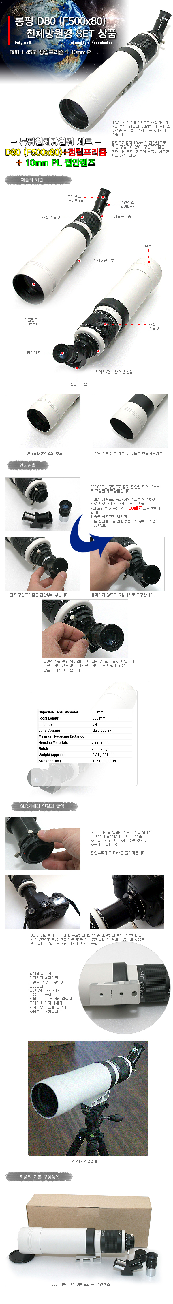 LongPerng D80 (F500/80) + 정립프리즘 + 접안렌즈 세트