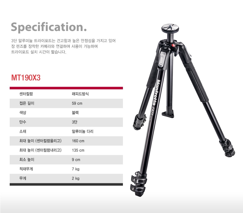 MT190X3 190X ALU 3 SECTION TRIPOD