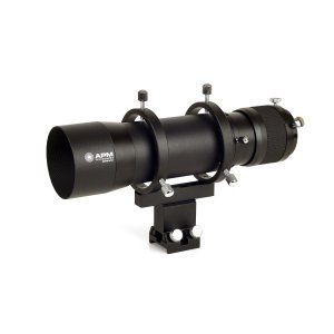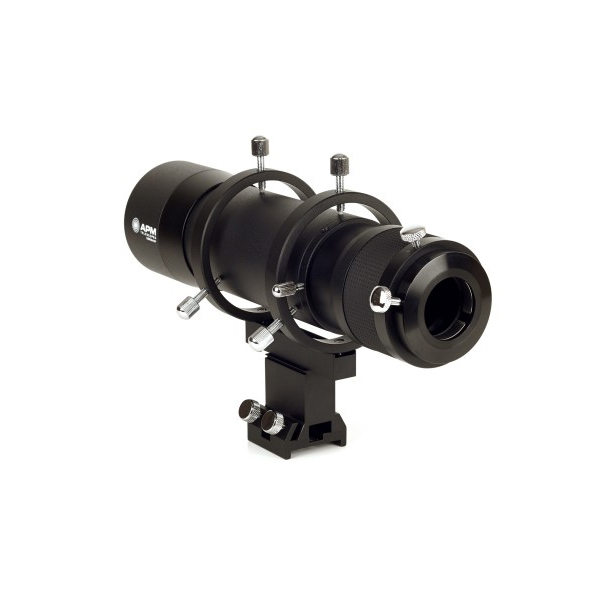 The slightly larger straight through version of our 50mm viewfinder, also with the new universal base with a wider contact surface. Equipped with a precise 1¼' / 2' helical focuser. The optics are multi-coated. This scope can be used very variably by changing the eyepiece (i.e. APM crosshair eyepiece 20mm: 11.4x, APM crosshair eyepiece 26mm 2': 8.8x).