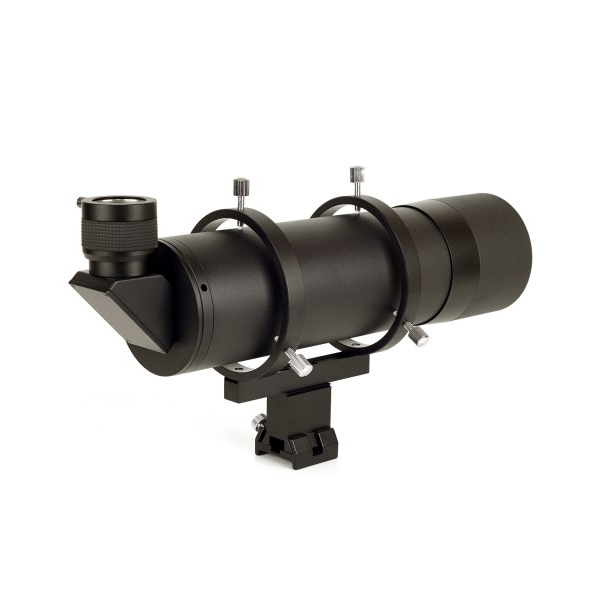 The large high quality APM 80 mm finderscope with the new Universal Base with wider contact surface. The included 90° prism provides an upright /*C*and*C*/ unreversed image. You can use also every 1 1/4' eyepiece with this finder - e.g. our optional cross hair eyepieces - /*C*or*C*/ you can use it as an guiding scope. The optic /*C*and*C*/ the prism are multicoated.