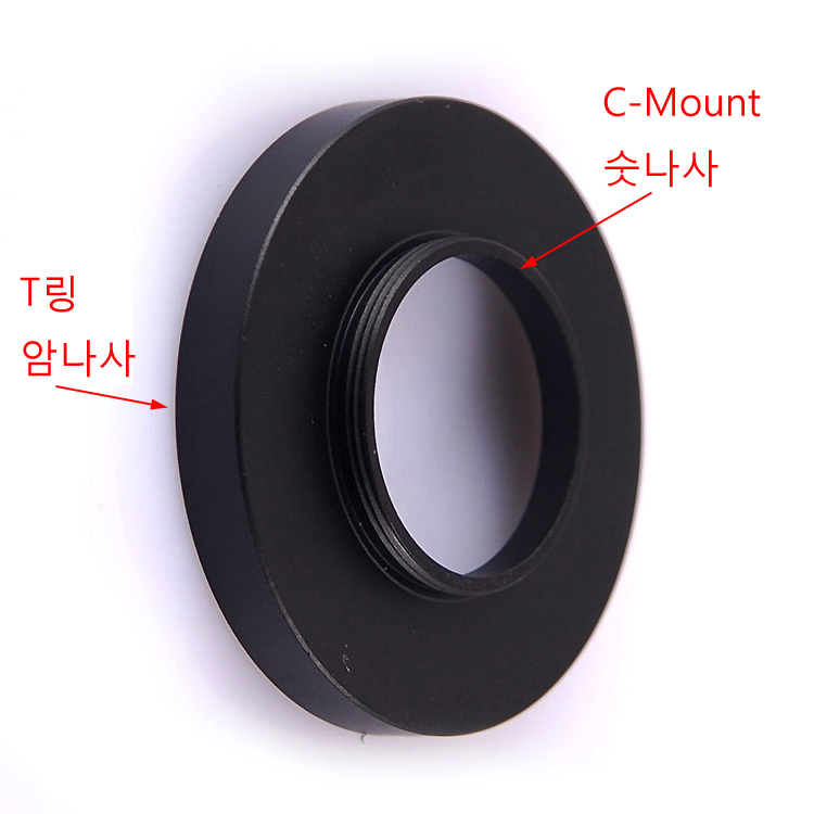 T링 나사선이 있는 천체망원경이나 필드스코프에 CCTV를 부착하기 위한 어댑터입니다.