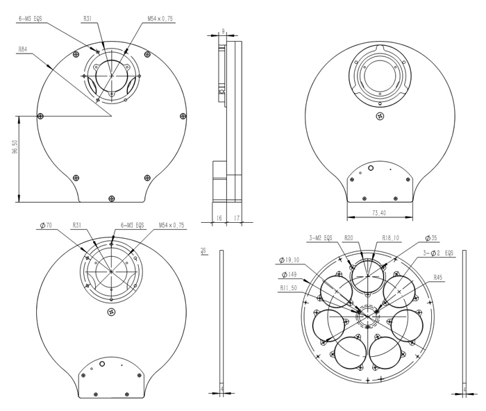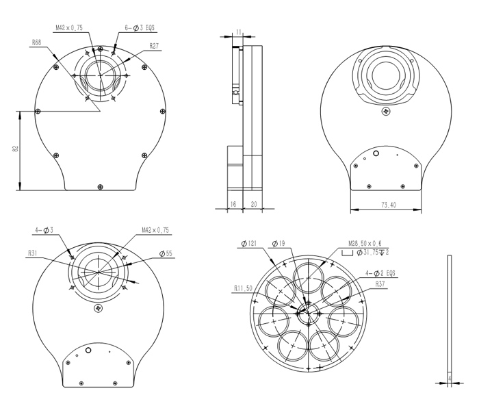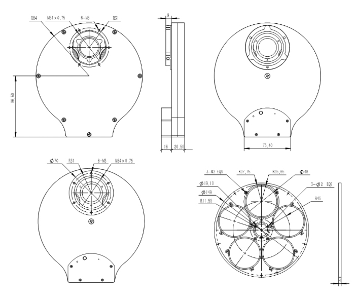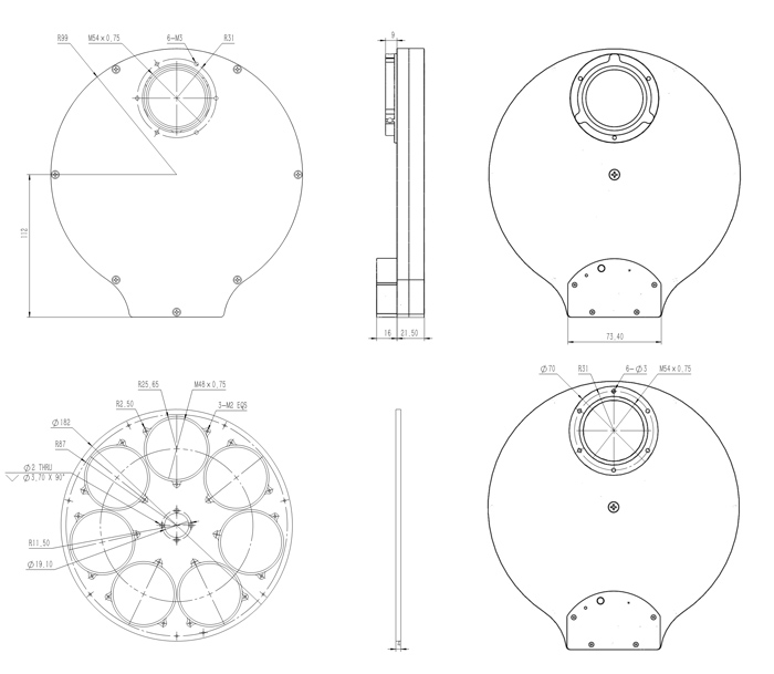 QHYCCD selected a high quality ultra-thin hybrid stepper motor for the 3rd generation filter wheel design. Compared to the PM stepper motor used in many filter wheels, the hybrid stepper motor has higher precision, smaller step angle, /*C*and*C*/ is more expensive. The motor is enclosed to prevent dust from entering the motor, thus improving reliability /*C*and*C*/ motor life. The direction of filter rotation can be reversed: The filter carousel can be rotated clockwise /*C*or*C*/ counterclockwise to complete the rotation quickly which is very convenient.