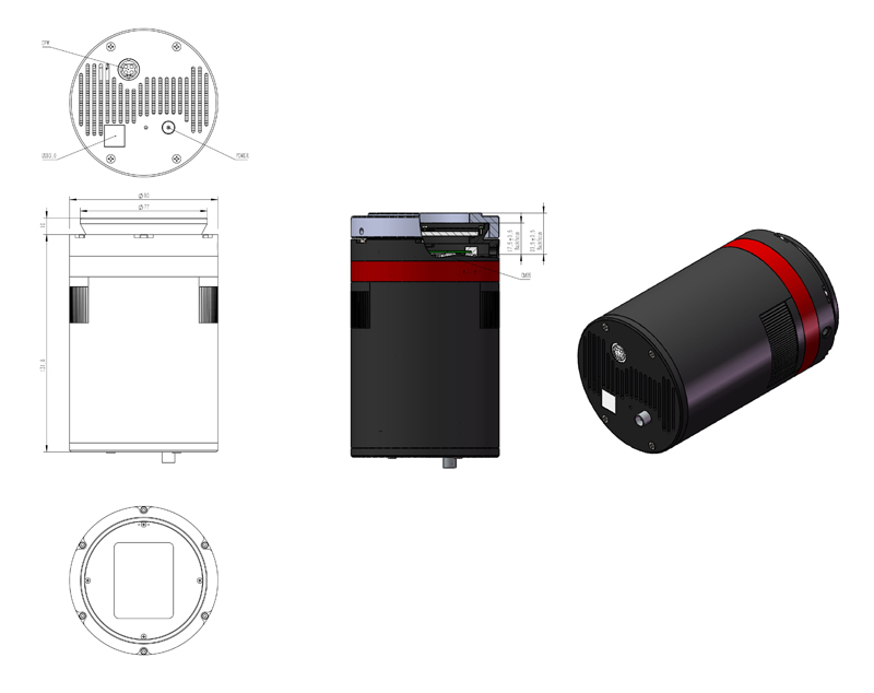 The QHY600 uses the latest SONY IMX455 back-illuminated sensor, a full frame (35mm format) sensor with 3.76um pixels /*C*and*C*/ native 16-bit A/D. This sensor is available in both monochrome /*C*and*C*/ color versions. The sensor size is 36mm x 24mm. With the round body design, the QHY600 is an ideal camera to match the image circle of the new generaltion of RASA telescopes.