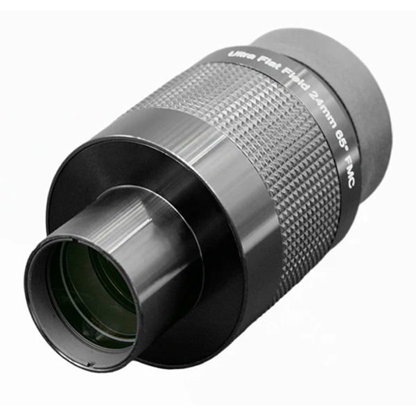 Sky Rover Ultra Flat Field 24mm eyepiece (hereinafter referred to as UF24 eyepiece) is a newly developed flat field eyepiece of SKY ROVER. It adopts compact mechanical design, provides high-quality optical imaging, can obviously improve the eyepiece field curvature, /*C*and*C*/ control the edge distortion in an ideal range, /*C*and*C*/ can obtain good imaging even on the main mirror with fast focal ratio. UF24 eyepiece has an large eyepiece (35mm) /*C*and*C*/ an exit pupil distance as long as 29mm, so even wearing glasses can also get comfortable observation experience. It is equipped with foldable eye cup, observing close to eyes rarely gets black. Remove the foldable eye mask, there is a M43X0.75 thread. If you need to take photos behind the eyepiece, you can also use this interface for projection photography. If the filter behind the eyepiece is needed, it can also be installed here, which will /*C*not*C*/ affect the look /*C*and*C*/ feel too much.