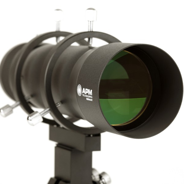 The slightly larger straight through version of our 50mm viewfinder, also with the new universal base with a wider contact surface. Equipped with a precise 1¼' / 2' helical focuser. The optics are multi-coated. This scope can be used very variably by changing the eyepiece (i.e. APM crosshair eyepiece 20mm: 11.4x, APM crosshair eyepiece 26mm 2': 8.8x).