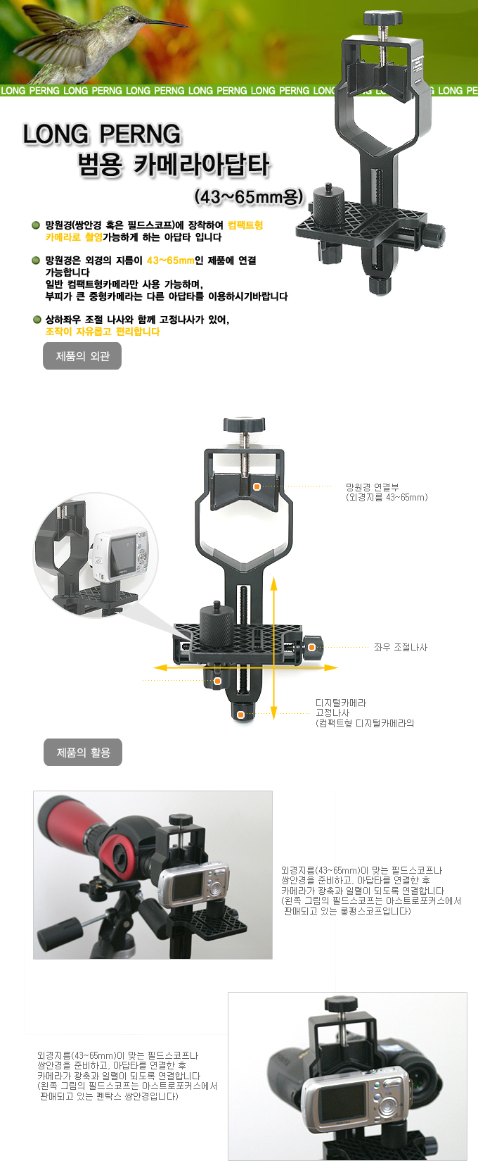 LongPerng 범용 카메라아답타 (43mm~65mm)