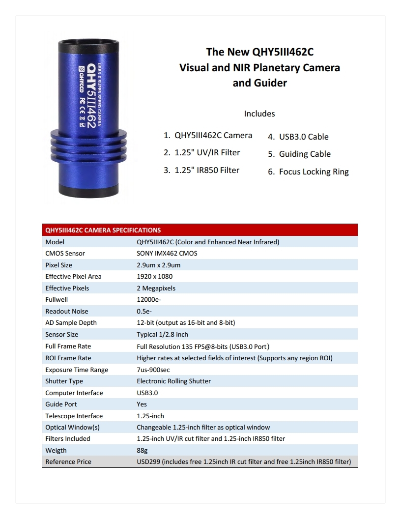 QHY5III462C 칼라 카메라[즉시공급]